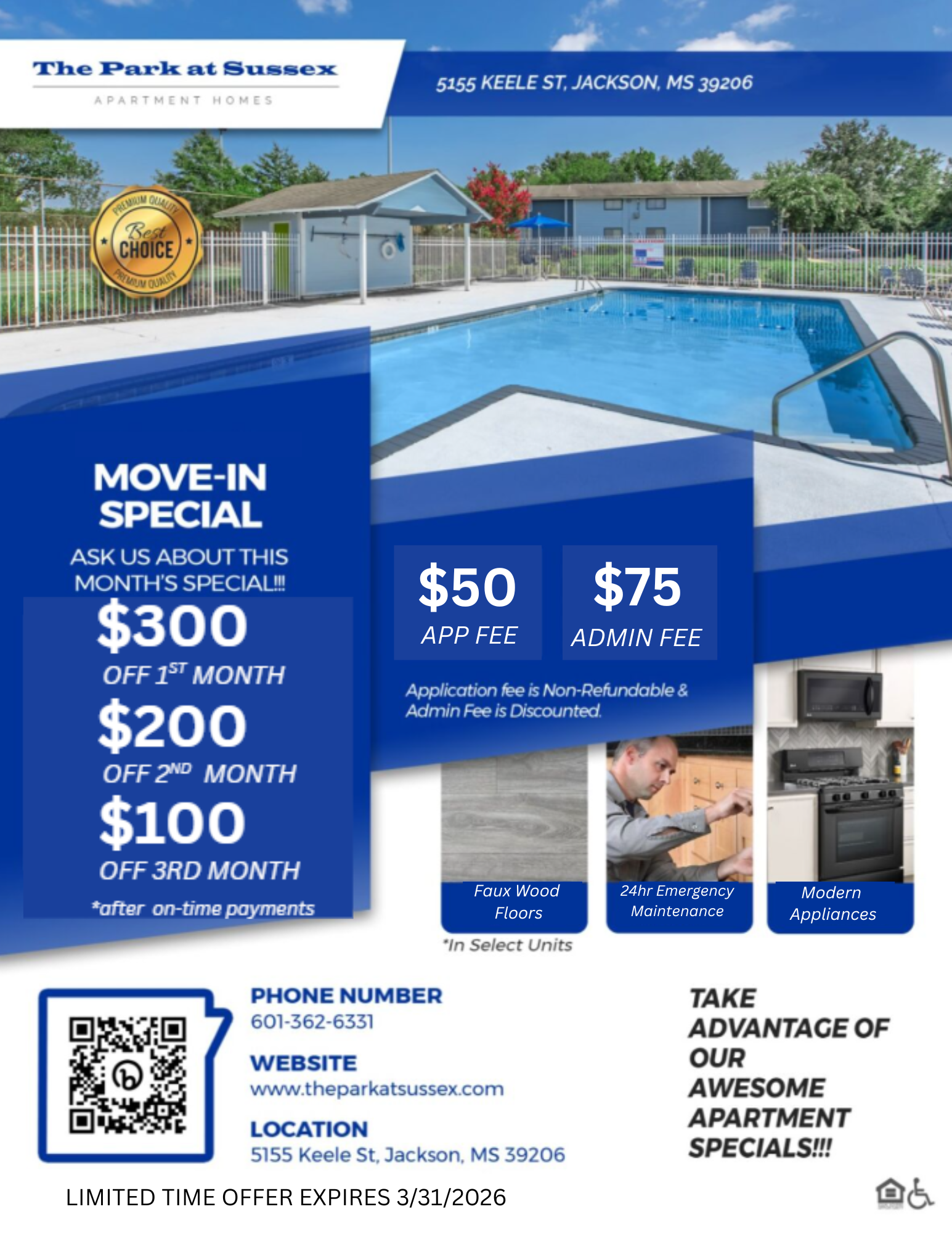 Spring is in the air!đŸŒ¸Move into your new home this March and take advantage of our limited-time move-in specials. $300 OFF FIRST FULL MONTH’S RENT $200 OFF SECOND FULL MONTH’S RENT $100 OFF THIRD FULL MONTH’S RENT *Must Maintain On-Time Payments New season, new space, new savings — don’t miss your chance to make your move!